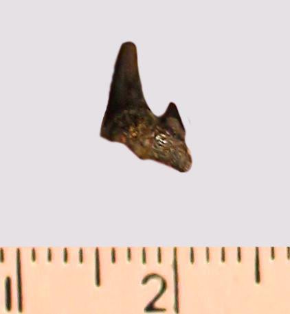 Зуб. Акула. Odontaspis macrorhiza (Cope) Leriche, 1902. Классификация: Хордовые Chordata, Позвоночные Vertebrata, Хрящевые рыбы Chondrichthyes, Пластиножаберные Elasmobranchii