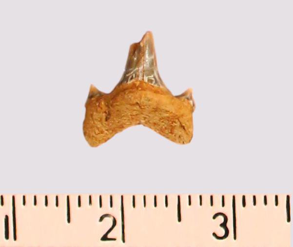 Зуб. Акула. Odontaspis macrorhiza (Cope) Leriche, 1902. Классификация: Хордовые Chordata, Позвоночные Vertebrata, Хрящевые рыбы Chondrichthyes, Пластиножаберные Elasmobranchii