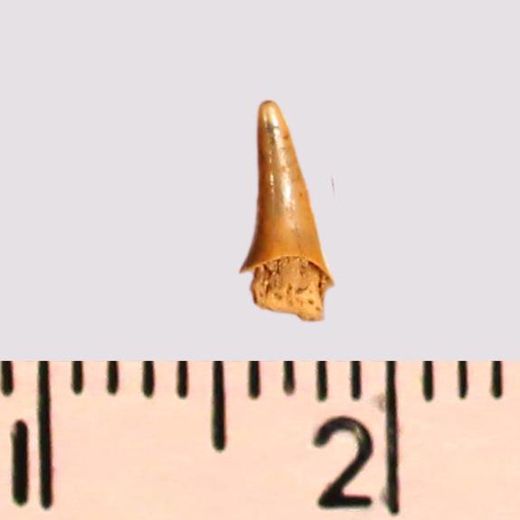 Зуб (фрагмент). Акула. Odontaspis subulata (Agassiz, 1843). Классификация: Хордовые Chordata, Позвоночные Vertebrata, Хрящевые рыбы Chondrichthyes, Пластиножаберные Elasmobranchii