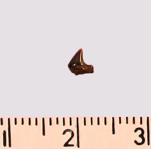 Зуб (фрагмент). Акула. Odontaspis subulata (Agassiz, 1843). Классификация: Хордовые Chordata, Позвоночные Vertebrata, Хрящевые рыбы Chondrichthyes, Пластиножаберные Elasmobranchii