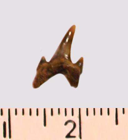 Зуб. Акула. Odontaspis subulata (Agassiz, 1843). Классификация: Хордовые Chordata, Позвоночные Vertebrata, Хрящевые рыбы Chondrichthyes, Пластиножаберные Elasmobranchii