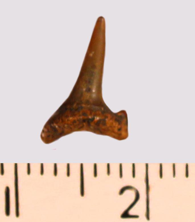Зуб. Акула. Eostriatolamia subulata (Agassiz, 1843). Классификация: Хордовые Chordata, Позвоночные Vertebrata, Хрящевые рыбы Chondrichthyes, Пластиножаберные Elasmobranchii