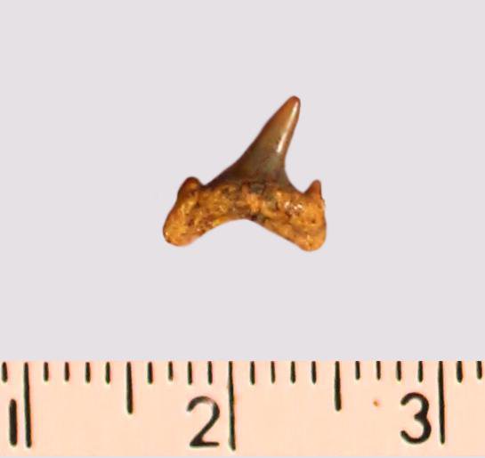 Зуб. Акула. Eostriatolamia subulata (Agassiz, 1843). Классификация: Хордовые Chordata, Позвоночные Vertebrata, Хрящевые рыбы Chondrichthyes, Пластиножаберные Elasmobranchii