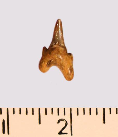 Зуб. Акула. Odontaspis macrorhiza (Cope) Leriche, 1902. Классификация: Хордовые Chordata, Позвоночные Vertebrata, Хрящевые рыбы Chondrichthyes, Пластиножаберные Elasmobranchii