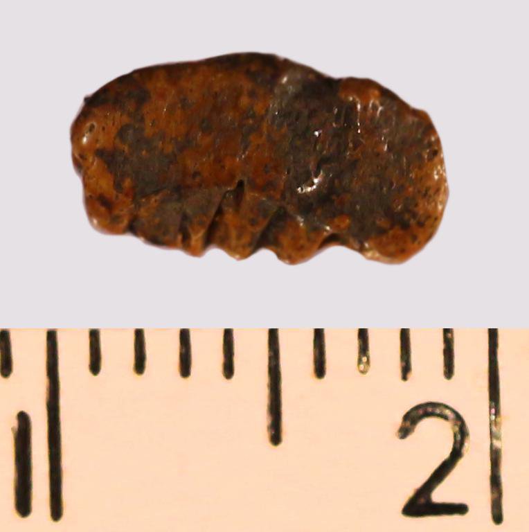 Зуб (фрагмент). Акула. Paraorthacodus sp. Классификация: Хордовые Chordata, Позвоночные Vertebrata, Хрящевые рыбы Chondrichthyes, Пластиножаберные Elasmobranchii