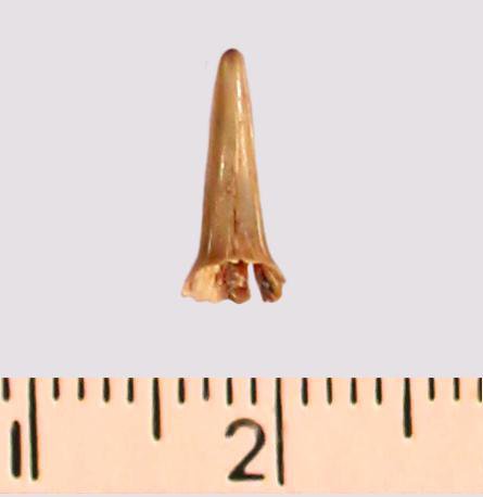 Зуб (фрагмент). Акула. Lamniformes gen. et sp. indet. Классификация: Хордовые Chordata, Позвоночные Vertebrata, Хрящевые рыбы Chondrichthyes, Пластиножаберные Elasmobranchii