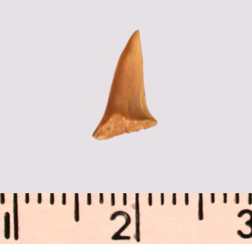 Зуб (фрагмент). Акула. Lamniformes gen. et sp. indet. Классификация: Хордовые Chordata, Позвоночные Vertebrata, Хрящевые рыбы Chondrichthyes, Пластиножаберные Elasmobranchii