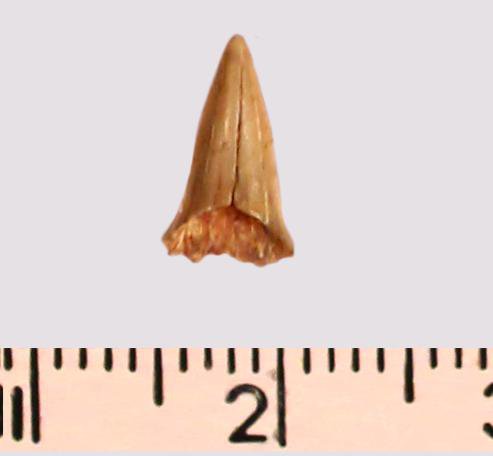 Зуб (фрагмент). Акула. Lamniformes gen. et sp. indet. Классификация: Хордовые Chordata, Позвоночные Vertebrata, Хрящевые рыбы Chondrichthyes, Пластиножаберные Elasmobranchii