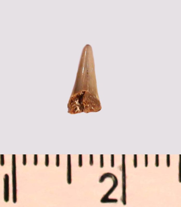 Зуб (фрагмент). Акула. Lamniformes gen. et sp. indet. Классификация: Хордовые Chordata, Позвоночные Vertebrata, Хрящевые рыбы Chondrichthyes, Пластиножаберные Elasmobranchii