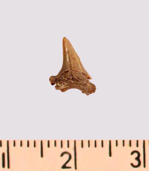 Зуб. Акула. Odontaspis macrorhiza (Cope) Leriche, 1902. Классификация: Хордовые Chordata, Позвоночные Vertebrata, Хрящевые рыбы Chondrichthyes, Пластиножаберные Elasmobranchii