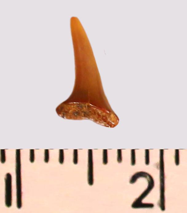 Зуб (фрагмент). Акула. Odontaspis subulata (Agassiz, 1843). Классификация: Хордовые Chordata, Позвоночные Vertebrata, Хрящевые рыбы Chondrichthyes, Пластиножаберные Elasmobranchii