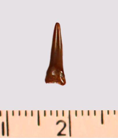Зуб (фрагмент). Акула. Odontaspis subulata (Agassiz, 1843). Классификация: Хордовые Chordata, Позвоночные Vertebrata, Хрящевые рыбы Chondrichthyes, Пластиножаберные Elasmobranchii