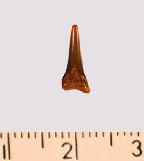 Зуб (фрагмент). Акула. Odontaspis subulata (Agassiz, 1843). Классификация: Хордовые Chordata, Позвоночные Vertebrata, Хрящевые рыбы Chondrichthyes, Пластиножаберные Elasmobranchii