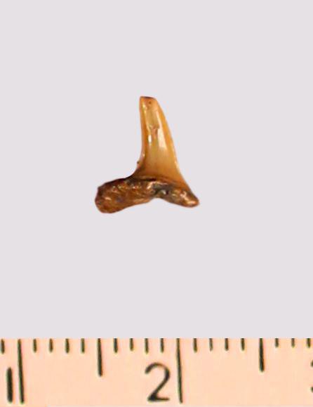 Зуб. Акула. Odontaspis subulata (Agassiz, 1843). Классификация: Хордовые Chordata, Позвоночные Vertebrata, Хрящевые рыбы Chondrichthyes, Пластиножаберные Elasmobranchii