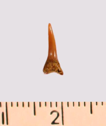 Зуб. Акула. Odontaspis subulata (Agassiz, 1843). Классификация: Хордовые Chordata, Позвоночные Vertebrata, Хрящевые рыбы Chondrichthyes, Пластиножаберные Elasmobranchii