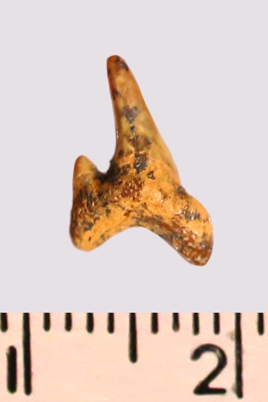 Зуб. Акула. Odontaspis subulata (Agassiz, 1843). Классификация: Хордовые Chordata, Позвоночные Vertebrata, Хрящевые рыбы Chondrichthyes, Пластиножаберные Elasmobranchii