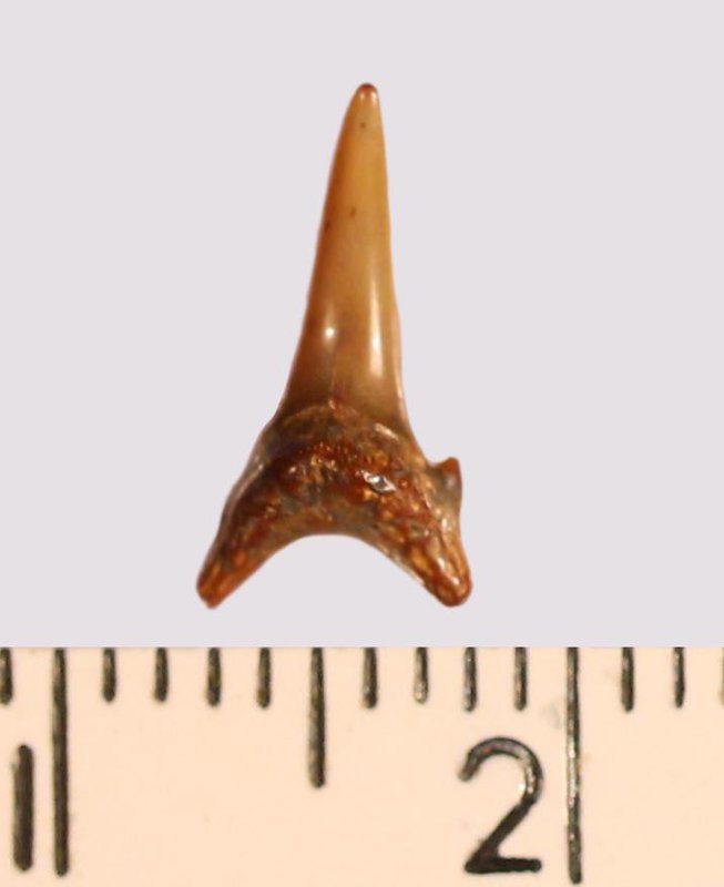 Зуб. Акула. Odontaspis subulata (Agassiz, 1843). Классификация: Хордовые Chordata, Позвоночные Vertebrata, Хрящевые рыбы Chondrichthyes, Пластиножаберные Elasmobranchii
