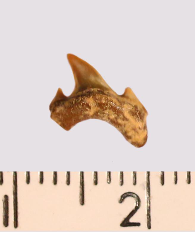 Зуб. Акула. Odontaspis subulata (Agassiz, 1843). Классификация: Хордовые Chordata, Позвоночные Vertebrata, Хрящевые рыбы Chondrichthyes, Пластиножаберные Elasmobranchii