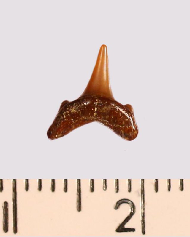 Зуб. Акула. Odontaspis subulata (Agassiz, 1843). Классификация: Хордовые Chordata, Позвоночные Vertebrata, Хрящевые рыбы Chondrichthyes, Пластиножаберные Elasmobranchii
