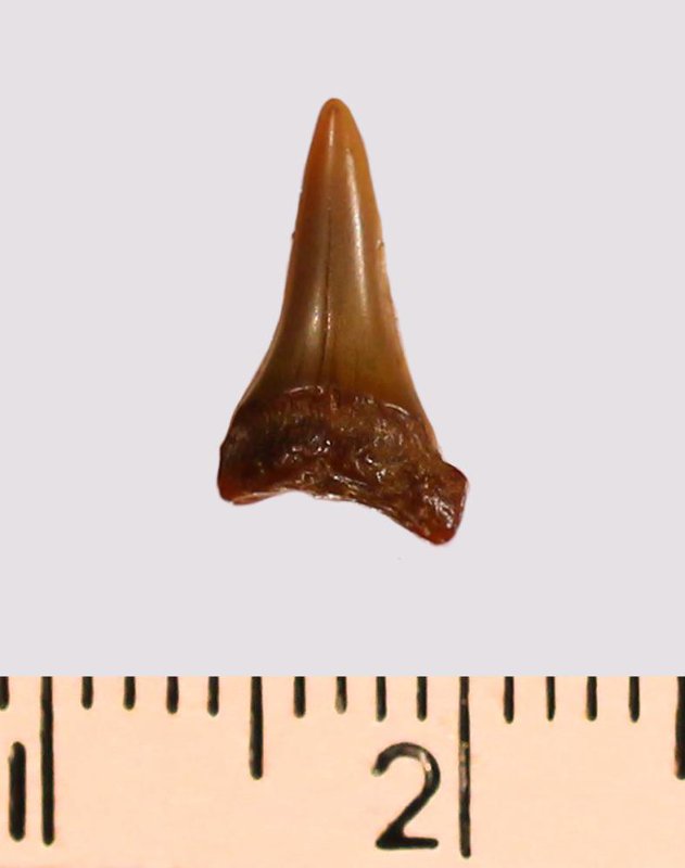 Зуб (фрагмент). Акула. Odontaspis macrorhiza (Cope) Leriche, 1902. Классификация: Хордовые Chordata, Позвоночные Vertebrata, Хрящевые рыбы Chondrichthyes, Пластиножаберные Elasmobranchii