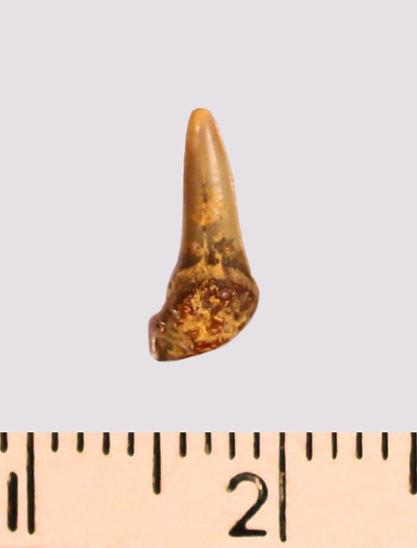 Зуб (фрагмент). Акула. Odontaspis macrorhiza (Cope) Leriche, 1902. Классификация: Хордовые Chordata, Позвоночные Vertebrata, Хрящевые рыбы Chondrichthyes, Пластиножаберные Elasmobranchii