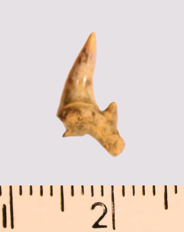 Зуб. Акула. Odontaspis macrorhiza (Cope) Leriche, 1902. Классификация: Хордовые Chordata, Позвоночные Vertebrata, Хрящевые рыбы Chondrichthyes, Пластиножаберные Elasmobranchii