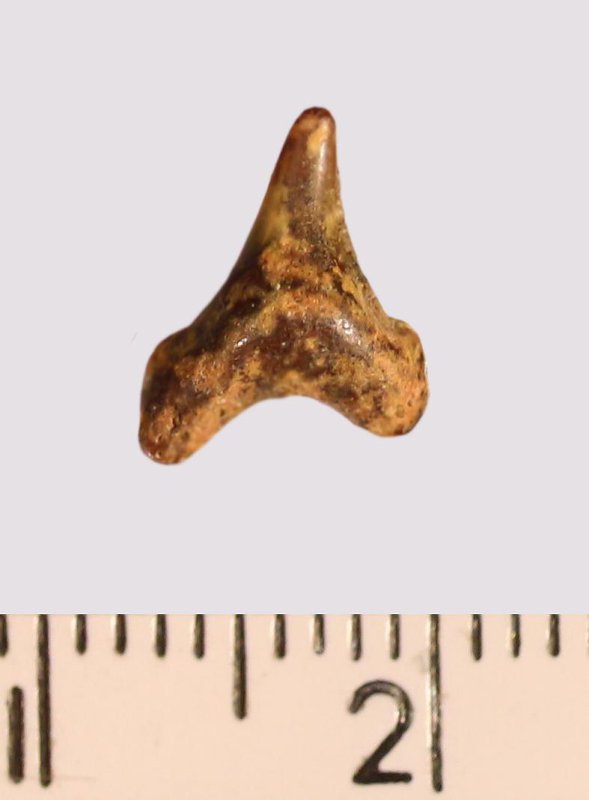 Зуб. Акула. Odontaspis macrorhiza (Cope) Leriche, 1902. Классификация: Хордовые Chordata, Позвоночные Vertebrata, Хрящевые рыбы Chondrichthyes, Пластиножаберные Elasmobranchii