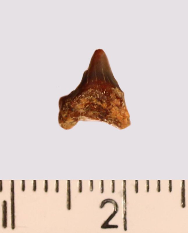 Зуб. Акула. Odontaspis macrorhiza (Cope) Leriche, 1902. Классификация: Хордовые Chordata, Позвоночные Vertebrata, Хрящевые рыбы Chondrichthyes, Пластиножаберные Elasmobranchii