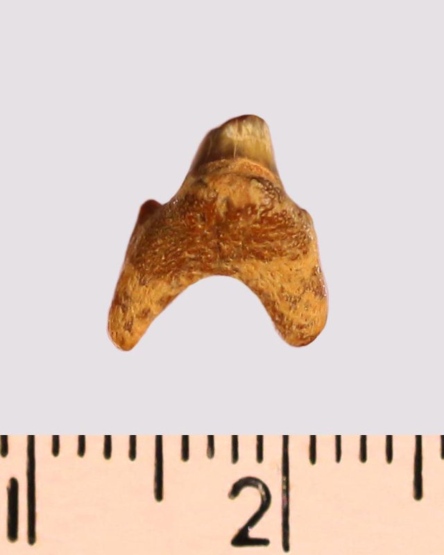 Зуб. Акула. Odontaspis macrorhiza (Cope) Leriche, 1902. Классификация: Хордовые Chordata, Позвоночные Vertebrata, Хрящевые рыбы Chondrichthyes, Пластиножаберные Elasmobranchii