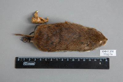 Тушка с черепом. Полевка-экономка. Microtus oeconomus Pallas,1776. Классификация: Хордовые Chordata, Позвоночные Vertebrata, Млекопитающие Mammalia, Грызуны Rodentia, Cricetidae, Полевка-экономка Microtus oeconomus Pallas,1776