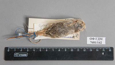 Тушка с черепом. Пятипалый карликовый тушканчик. Cardiocranius paradoxus Satunin,1903. Классификация: Хордовые Chordata, Позвоночные Vertebrata, Млекопитающие Mammalia, Грызуны Rodentia, Dipodidae, Пятипалый карликовый тушканчик Cardiocranius paradoxus Satunin,1903