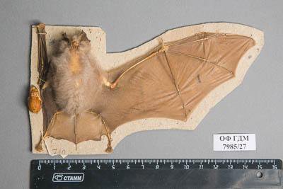 Тушка с черепом. Южный подковонос. Rhinolophus euryale Blasius,1853. Классификация: Хордовые Chordata, Позвоночные Vertebrata, Млекопитающие Mammalia, Рукокрылые Chiroptera, Подковоносые Rhinolophidae, Южный подковонос Rhinolophus euryale Blasius,1853
