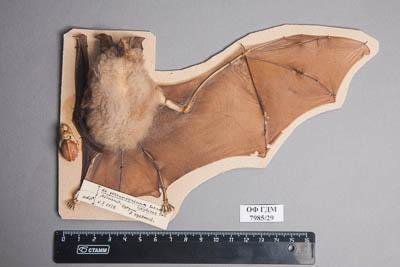 Тушка с черепом. Большой подковонос. Rhinolophus ferrumequinum Schreber,1774. Классификация: Хордовые Chordata, Позвоночные Vertebrata, Млекопитающие Mammalia, Рукокрылые Chiroptera, Подковоносые Rhinolophidae, Большой подковонос Rhinolophus ferrumequinum Schreber,1774