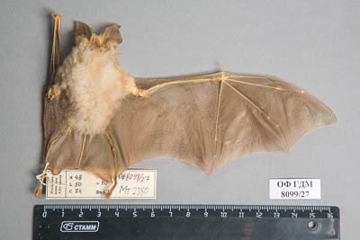 Тушка с черепом. Южный подковонос. Rhinolophus euryale Blasius,1853. Классификация: Хордовые Chordata, Позвоночные Vertebrata, Млекопитающие Mammalia, Рукокрылые Chiroptera, Подковоносые Rhinolophidae, Южный подковонос Rhinolophus euryale Blasius,1853