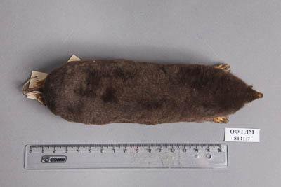 Тушка с черепом. Алтайский крот. Talpa altaica Nikolsky,1883. Классификация: Хордовые Chordata, Позвоночные Vertebrata, Млекопитающие Mammalia, Землеройкообразные Soricomorpha, Talpidae, Алтайский крот Talpa altaica Nikolsky,1883