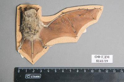 Тушка с черепом. Нетопырь-карлик. Pipistrellus pipistrellus Schreber,1774. Классификация: Хордовые Chordata, Позвоночные Vertebrata, Млекопитающие Mammalia, Рукокрылые Chiroptera, Гладконосые Vespertilionidae, Нетопырь-карлик Pipistrellus pipistrellus Schreber,1774