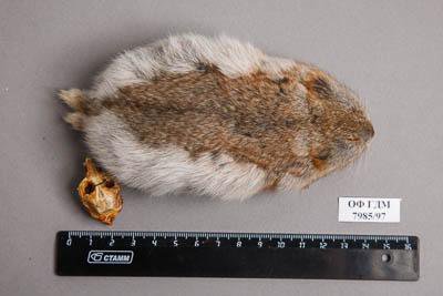 Тушка с черепом. Лемминг Виноградова. Dicrostonyx vinogradovi Ognev,1948. Классификация: Хордовые Chordata, Позвоночные Vertebrata, Млекопитающие Mammalia, Грызуны Rodentia, Cricetidae, Лемминг Виноградова Dicrostonyx vinogradovi Ognev,1948