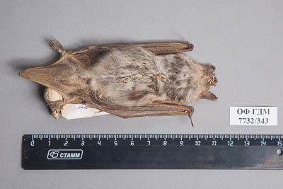 Тушка с черепом. Прудовая ночница. Myotis dasycneme Boie,1825. Классификация: Хордовые Chordata, Позвоночные Vertebrata, Млекопитающие Mammalia, Рукокрылые Chiroptera, Гладконосые Vespertilionidae, Прудовая ночница Myotis dasycneme Boie,1825