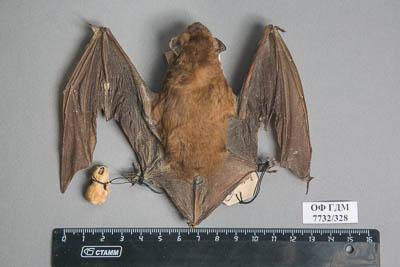 Тушка с черепом. Рыжая вечерница. Nyctalus noctula Schreber,1774. Классификация: Хордовые Chordata, Позвоночные Vertebrata, Млекопитающие Mammalia, Рукокрылые Chiroptera, Гладконосые Vespertilionidae, Рыжая вечерница Nyctalus noctula Schreber,1774