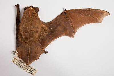 Тушка с черепом. Вечерница-авиатор. Nyctalus aviator Thomas,1911. Классификация: Хордовые Chordata, Позвоночные Vertebrata, Млекопитающие Mammalia, Рукокрылые Chiroptera, Гладконосые Vespertilionidae, Вечерница-авиатор Nyctalus aviator Thomas,1911