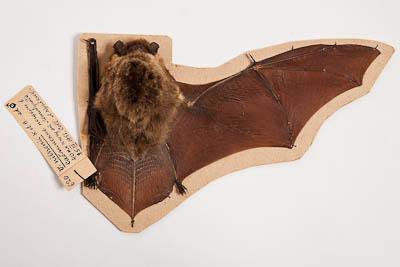 Тушка с черепом. Северный кожанок. Eptesicus nilssoni Keyserling et Blasius,1839. Классификация: Хордовые Chordata, Позвоночные Vertebrata, Млекопитающие Mammalia, Рукокрылые Chiroptera, Гладконосые Vespertilionidae, Северный кожанок Eptesicus nilssoni Keyserling et Blasius,1839