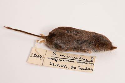 Тушка с черепом. Малая бурозубка. Sorex minutus L.,1766. Классификация: Хордовые Chordata, Позвоночные Vertebrata, Млекопитающие Mammalia, Землеройкообразные Soricomorpha, Soricidae, Малая бурозубка Sorex minutus L.,1766