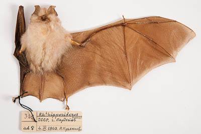Тушка с черепом. Малый подковонос. Rhinolophus hipposideros Bechstein,1800. Классификация: Хордовые Chordata, Позвоночные Vertebrata, Млекопитающие Mammalia, Рукокрылые Chiroptera, Подковоносые Rhinolophidae, Малый подковонос Rhinolophus hipposideros Bechstein,1800