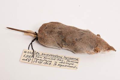 Тушка с черепом. Малая белозубка. Crocidura suaveolens Pallas,1811. Классификация: Хордовые Chordata, Позвоночные Vertebrata, Млекопитающие Mammalia, Землеройкообразные Soricomorpha, Soricidae, Малая белозубка Crocidura suaveolens Pallas,1811