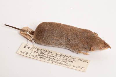 Тушка с черепом. Малая белозубка. Crocidura suaveolens Pallas,1811. Классификация: Хордовые Chordata, Позвоночные Vertebrata, Млекопитающие Mammalia, Землеройкообразные Soricomorpha, Soricidae, Малая белозубка Crocidura suaveolens Pallas,1811