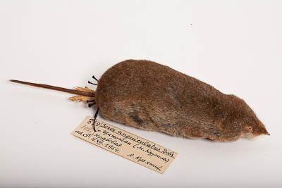 Тушка с черепом. Когтистая бурозубка. Sorex unguiculatus Dobson,1890. Классификация: Хордовые Chordata, Позвоночные Vertebrata, Млекопитающие Mammalia, Землеройкообразные Soricomorpha, Soricidae, Когтистая бурозубка Sorex unguiculatus Dobson,1890