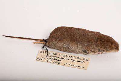 Тушка с черепом. Когтистая бурозубка. Sorex unguiculatus Dobson,1890. Классификация: Хордовые Chordata, Позвоночные Vertebrata, Млекопитающие Mammalia, Землеройкообразные Soricomorpha, Soricidae, Когтистая бурозубка Sorex unguiculatus Dobson,1890