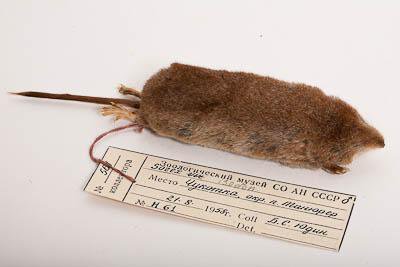 Тушка с черепом. Баргузинская бурозубка. Sorex isodon Turov,1924. Классификация: Хордовые Chordata, Позвоночные Vertebrata, Млекопитающие Mammalia, Землеройкообразные Soricomorpha, Soricidae, Баргузинская бурозубка Sorex isodon Turov,1924