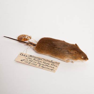 Тушка с черепом. Мышь-малютка. Micromys minutus Pallas,1771. Классификация: Хордовые Chordata, Позвоночные Vertebrata, Млекопитающие Mammalia, Грызуны Rodentia, Muridae, Мышь-малютка Micromys minutus Pallas,1771