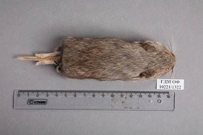 Тушка с черепом. Плоскочерепная полевка. Alticola strelzowi Kastschenko,1899. Классификация: Хордовые Chordata, Позвоночные Vertebrata, Млекопитающие Mammalia, Грызуны Rodentia, Cricetidae, Плоскочерепная полевка Alticola strelzowi Kastschenko,1899
